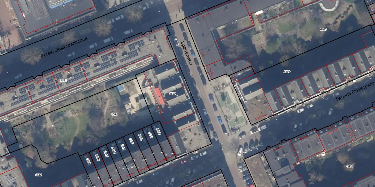 Sparrenweg 38 is gelegen op kadastraal perceel ASD15S8510. Deze kadastrale aanduiding is uniek en wordt gebruikt door het Kadaster om eigendomsrechten en andere zakelijke rechten vast te leggen. Het perceel maakt onderdeel uit van de kadastrale gemeente Amsterdam.