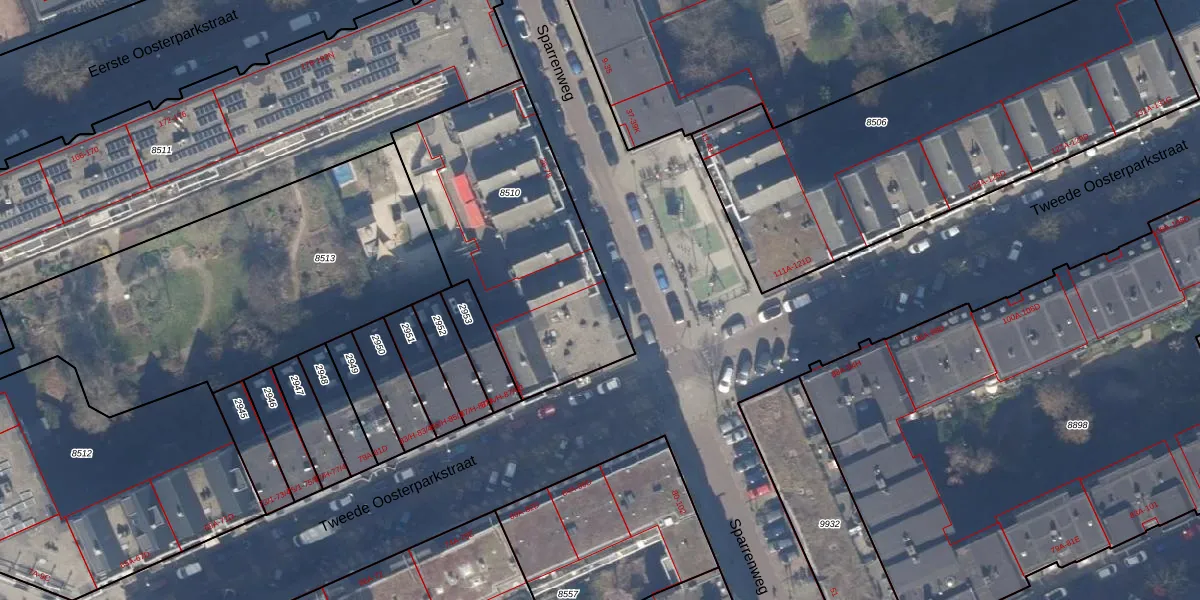 Sparrenweg 78 is gelegen op kadastraal perceel ASD15S8510. Deze kadastrale aanduiding is uniek en wordt gebruikt door het Kadaster om eigendomsrechten en andere zakelijke rechten vast te leggen. Het perceel maakt onderdeel uit van de kadastrale gemeente Amsterdam.