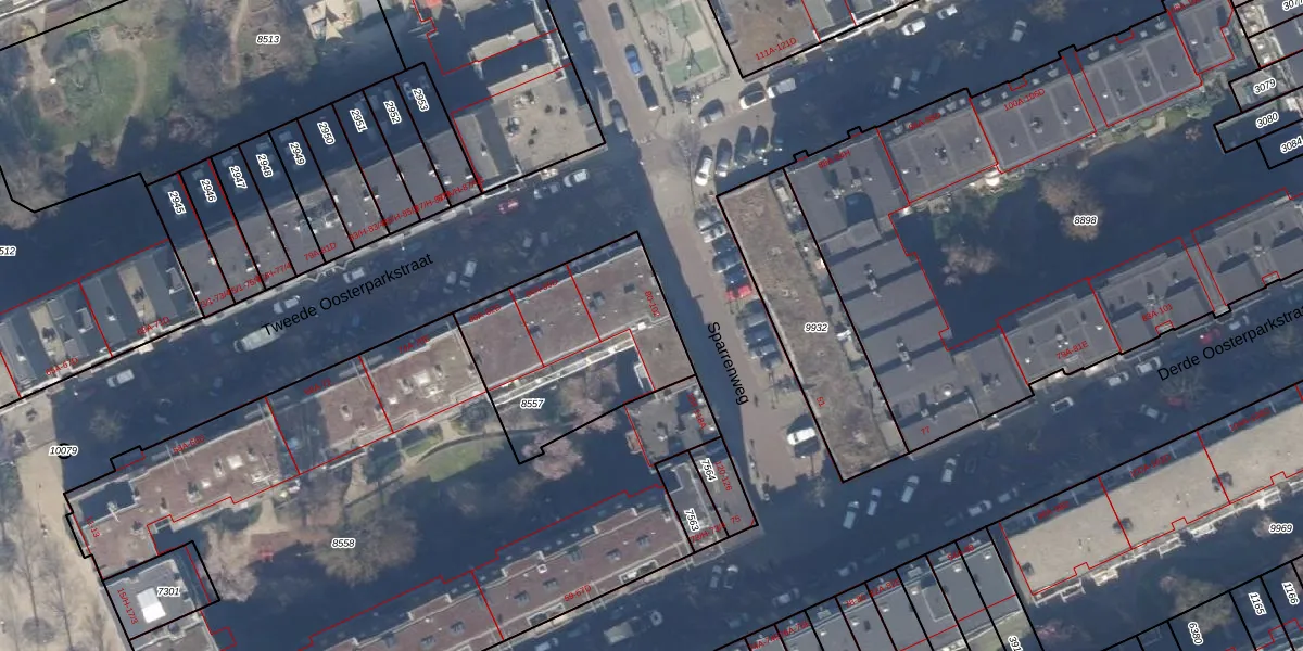 Sparrenweg 90 is gelegen op kadastraal perceel ASD15S8557. Deze kadastrale aanduiding is uniek en wordt gebruikt door het Kadaster om eigendomsrechten en andere zakelijke rechten vast te leggen. Het perceel maakt onderdeel uit van de kadastrale gemeente Amsterdam.