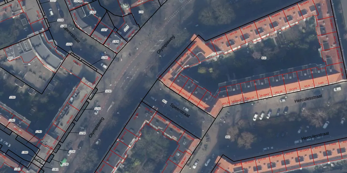 Het adres ligt op het perceel ASD24-AC-832, dat zich in de kadastrale gemeente Amsterdam bevindt. Het perceel is met 4379 m² relatief groot. Het gemiddelde ligt in de kadastrale gemeente Amsterdam op 1361,91 m². De grootste perceeloppervlakte in de kadastrale gemeente is 5,8 ha. De kleinste oppervlakte bedraagt 1 m². Op het perceel zijn 104 adressen aanwezig. In de Basisregistratie Kadaster (BRK) werden de grenzen van het perceel geregistreerd op 30-11-2010.