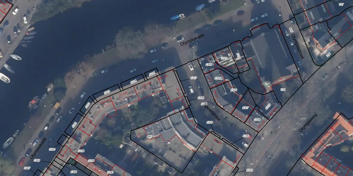 Het adres ligt op het perceel ASD24-AC-1350, dat zich in de kadastrale gemeente Amsterdam bevindt. Het perceel is met 4219 m² relatief groot. Het gemiddelde ligt in de kadastrale gemeente Amsterdam op 1361,91 m². De grootste perceeloppervlakte in de kadastrale gemeente is 5,8 ha. De kleinste oppervlakte bedraagt 1 m². Er zijn 109 adressen aanwezig op het perceel. De huidige grenzen van het perceel zijn digitaal in de Basisregistratie Kadaster (BRK) geregistreerd op 14-06-2012.