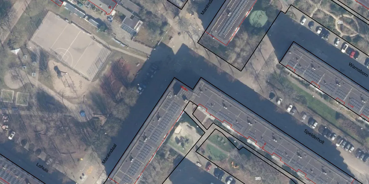 Het perceel waarop Spelderholt 237 staat heeft een oppervlakte van 4893 m². Dit is een zeer groot perceel. De perceeloppervlakte wordt geregistreerd door het Kadaster. Gedetailleerde informatie over de maten van dit perceel kunt u vinden in het rapport Kadastrale kaart met maatvoering van Spelderholt 237.