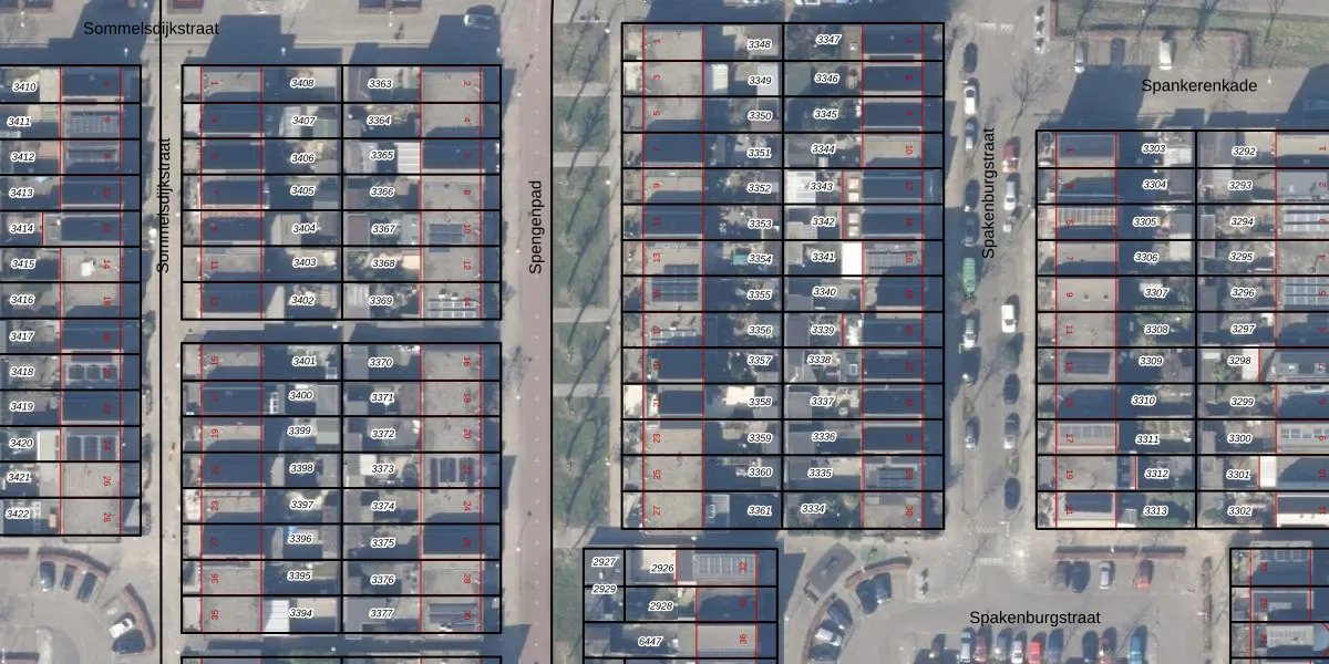 Gebruik de zoekbalk of klik op een perceel voor informatie over de adressen binnen dit perceel.