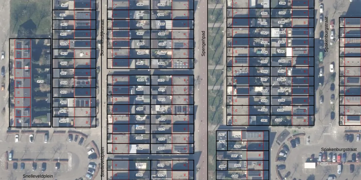 Gebruik de zoekbalk of klik op een perceel voor informatie over de adressen binnen dit perceel.