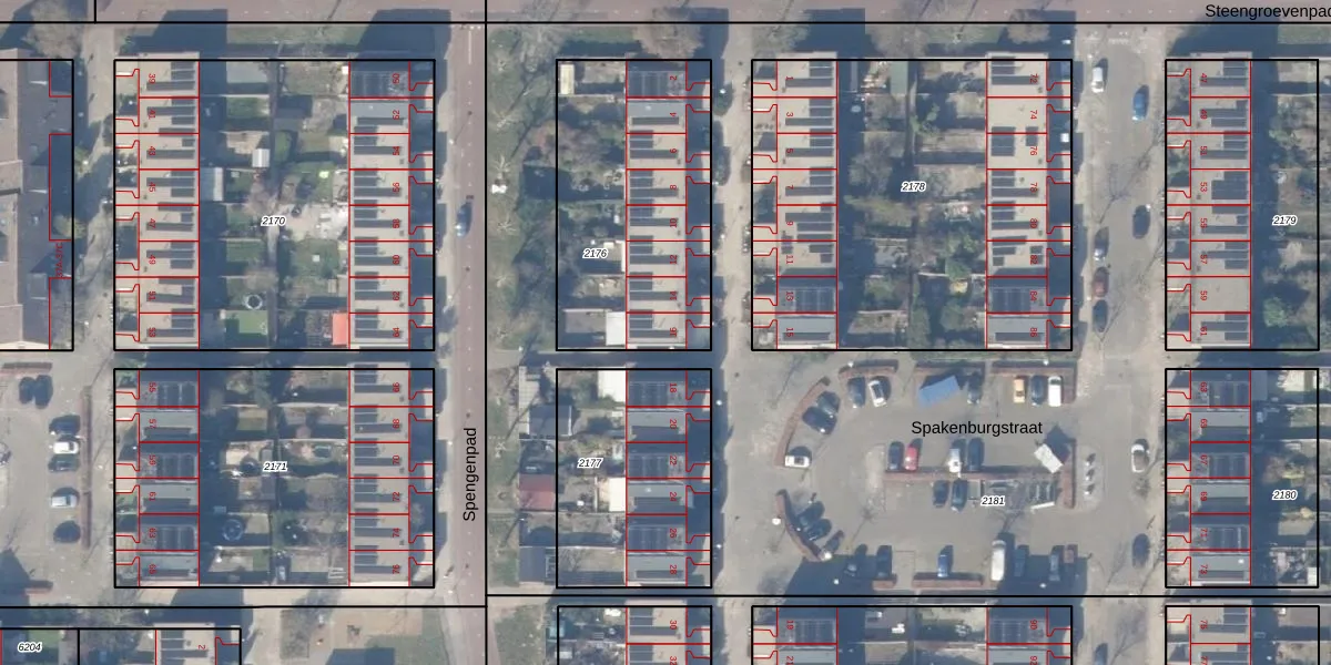Speuldestraat 16 is gelegen op kadastraal perceel WPK02L2176. Deze kadastrale aanduiding is uniek en wordt gebruikt door het Kadaster om eigendomsrechten en andere zakelijke rechten vast te leggen. Het perceel maakt onderdeel uit van de kadastrale gemeente Weesperkarspel.