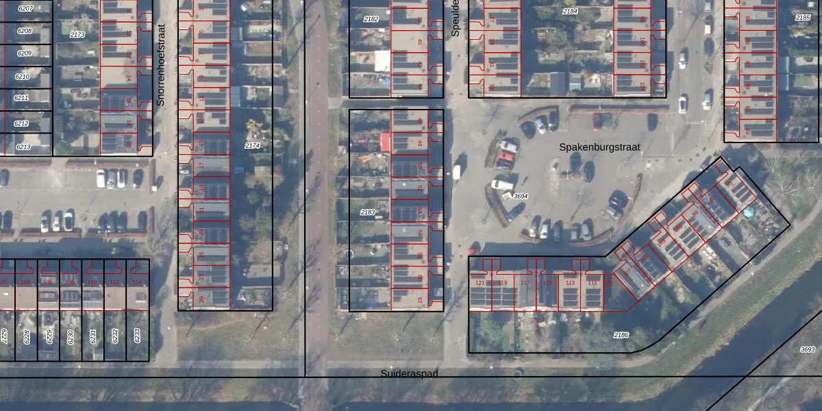 Het perceel waarop Speuldestraat 54 staat heeft een oppervlakte van 1131 m². Dit is een zeer groot perceel. De perceeloppervlakte wordt geregistreerd door het Kadaster. Gedetailleerde informatie over de maten van dit perceel kunt u vinden in het rapport Kadastrale kaart met maatvoering van Speuldestraat 54.