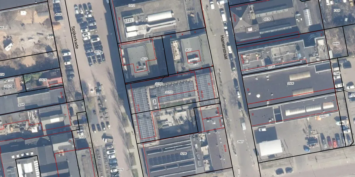 Het perceel waarop Spijkerkade 102 staat heeft een oppervlakte van 883 m². Dit is een groot perceel. De perceeloppervlakte wordt geregistreerd door het Kadaster. Gedetailleerde informatie over de maten van dit perceel kunt u vinden in het rapport Kadastrale kaart met maatvoering van Spijkerkade 102.
