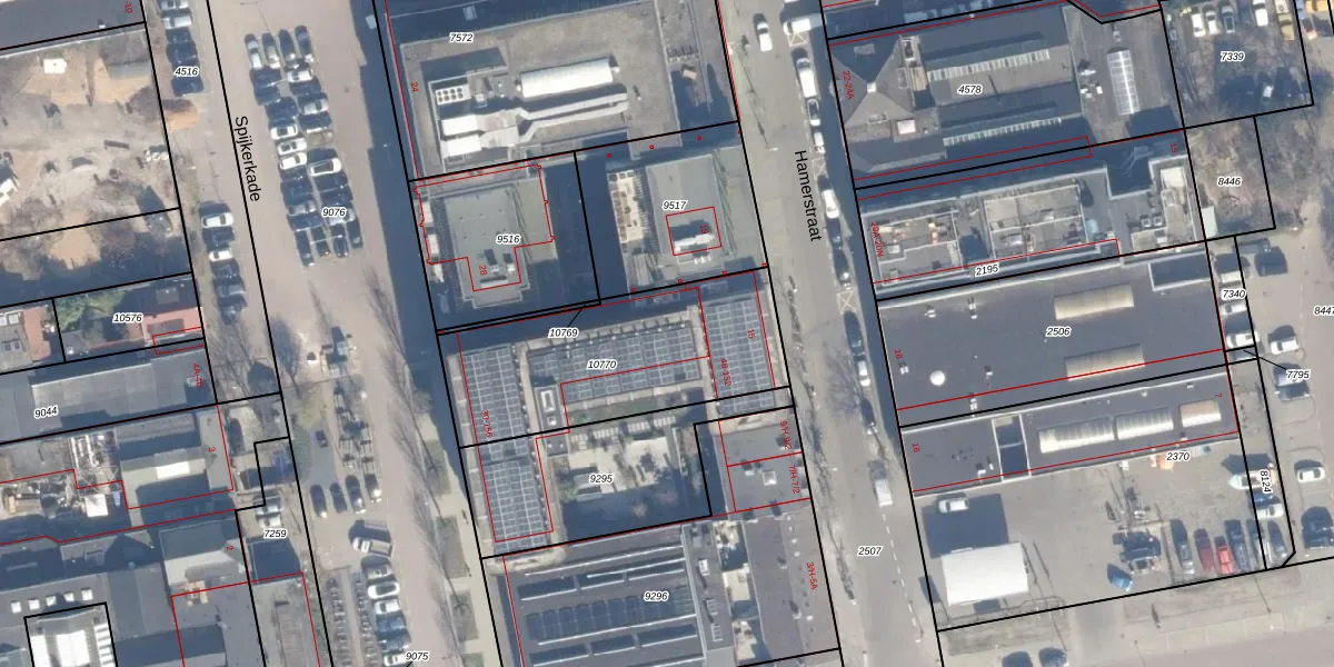 Het perceel waarop Spijkerkade 123 staat heeft een oppervlakte van 883 m². Dit is een groot perceel. De perceeloppervlakte wordt geregistreerd door het Kadaster. Gedetailleerde informatie over de maten van dit perceel kunt u vinden in het rapport Kadastrale kaart met maatvoering van Spijkerkade 123.