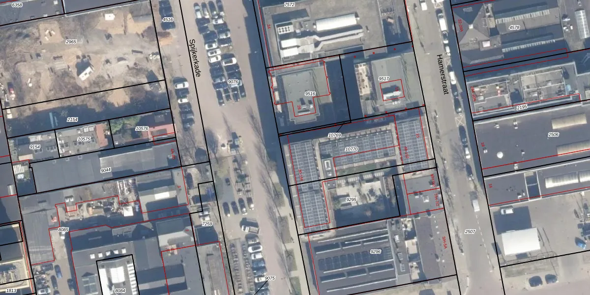 Het perceel waarop Spijkerkade 31 staat heeft een oppervlakte van 883 m². Dit is een groot perceel. De perceeloppervlakte wordt geregistreerd door het Kadaster. Gedetailleerde informatie over de maten van dit perceel kunt u vinden in het rapport Kadastrale kaart met maatvoering van Spijkerkade 31.