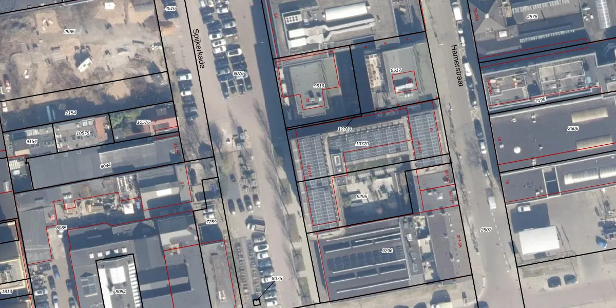 Het perceel waarop Spijkerkade 35 staat heeft een oppervlakte van 883 m². Dit is een groot perceel. De perceeloppervlakte wordt geregistreerd door het Kadaster. Gedetailleerde informatie over de maten van dit perceel kunt u vinden in het rapport Kadastrale kaart met maatvoering van Spijkerkade 35.