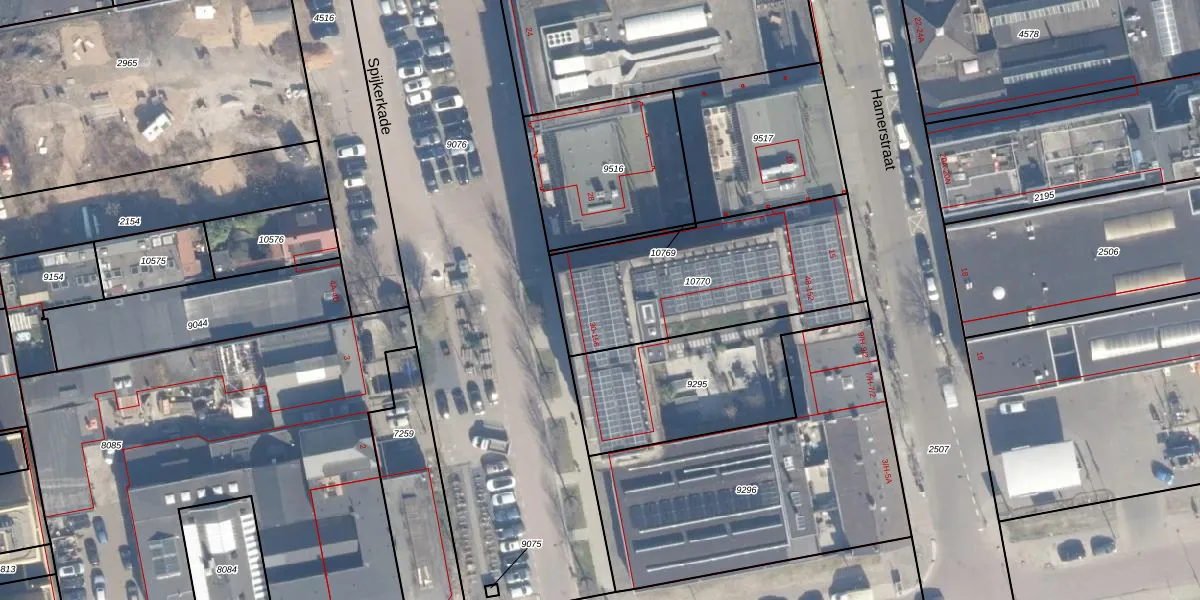 Het perceel waarop Spijkerkade 38 staat heeft een oppervlakte van 883 m². Dit is een groot perceel. De perceeloppervlakte wordt geregistreerd door het Kadaster. Gedetailleerde informatie over de maten van dit perceel kunt u vinden in het rapport Kadastrale kaart met maatvoering van Spijkerkade 38.