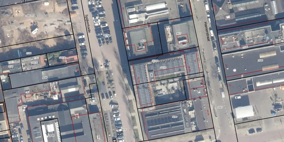Het perceel waarop Spijkerkade 43 staat heeft een oppervlakte van 883 m². Dit is een groot perceel. De perceeloppervlakte wordt geregistreerd door het Kadaster. Gedetailleerde informatie over de maten van dit perceel kunt u vinden in het rapport Kadastrale kaart met maatvoering van Spijkerkade 43.