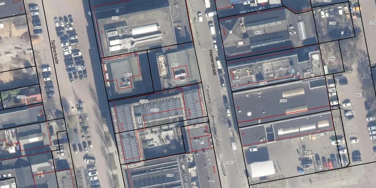 Het perceel waarop Spijkerkade 52 staat heeft een oppervlakte van 883 m². Dit is een groot perceel. De perceeloppervlakte wordt geregistreerd door het Kadaster. Gedetailleerde informatie over de maten van dit perceel kunt u vinden in het rapport Kadastrale kaart met maatvoering van Spijkerkade 52.