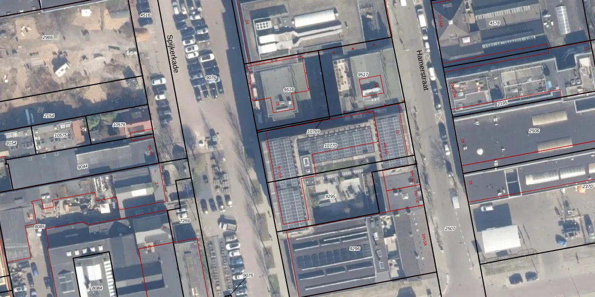 Het perceel waarop Spijkerkade 57 staat heeft een oppervlakte van 883 m². Dit is een groot perceel. De perceeloppervlakte wordt geregistreerd door het Kadaster. Gedetailleerde informatie over de maten van dit perceel kunt u vinden in het rapport Kadastrale kaart met maatvoering van Spijkerkade 57.