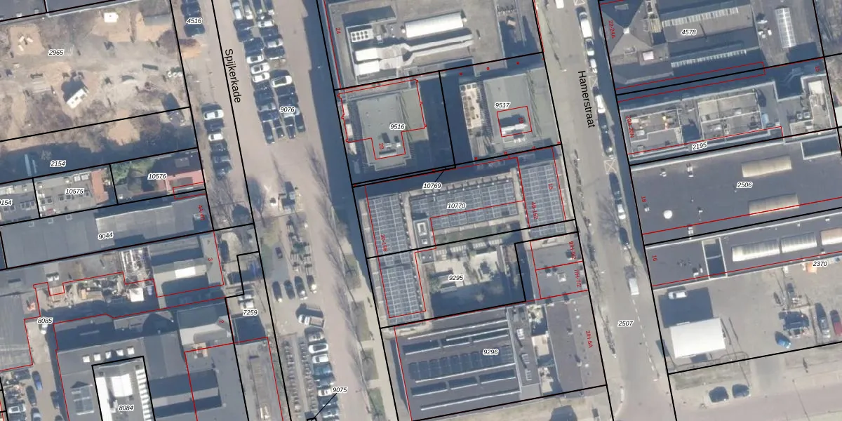 Het perceel waarop Spijkerkade 63 staat heeft een oppervlakte van 883 m². Dit is een groot perceel. De perceeloppervlakte wordt geregistreerd door het Kadaster. Gedetailleerde informatie over de maten van dit perceel kunt u vinden in het rapport Kadastrale kaart met maatvoering van Spijkerkade 63.