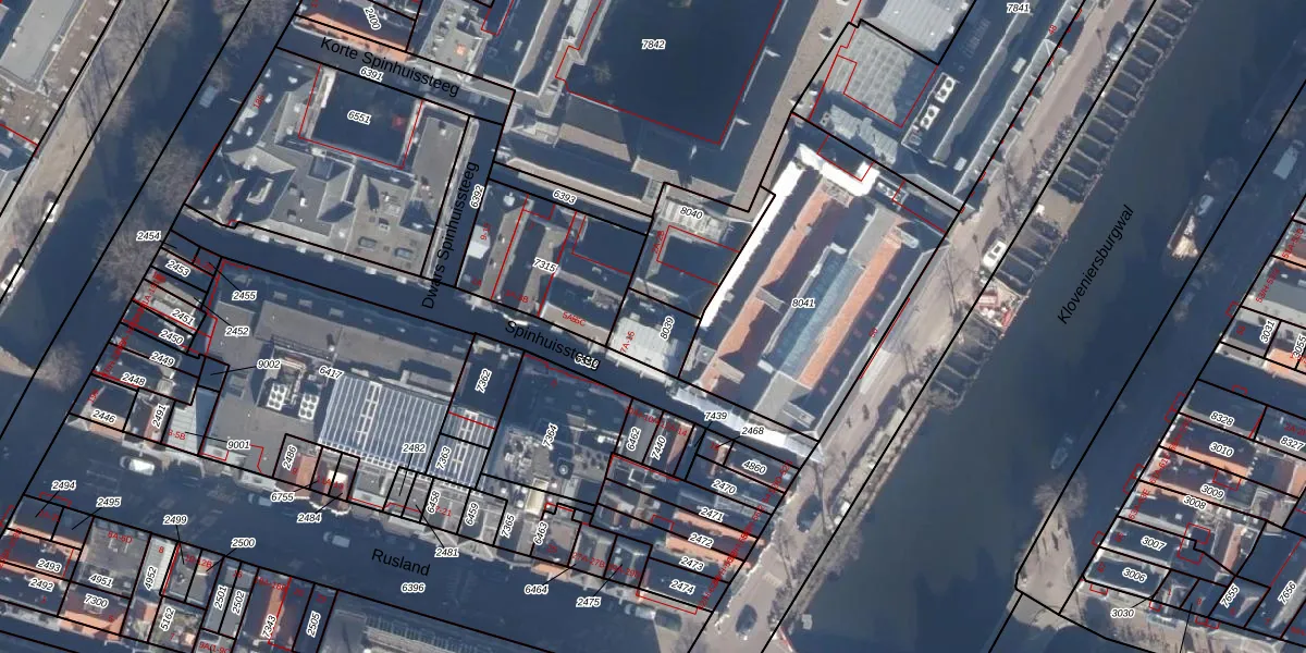 Spinhuissteeg 9-B is gelegen op kadastraal perceel ASD05G8039. Deze kadastrale aanduiding is uniek en wordt gebruikt door het Kadaster om eigendomsrechten en andere zakelijke rechten vast te leggen. Het perceel maakt onderdeel uit van de kadastrale gemeente Amsterdam.