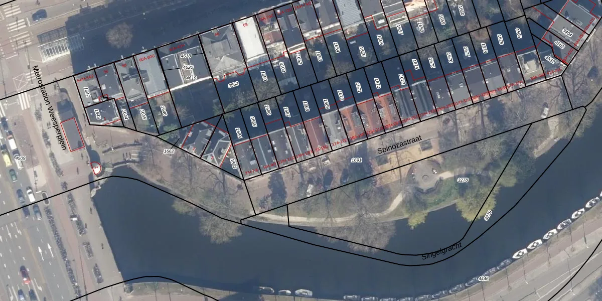 Spinozastraat 13-O is gelegen op kadastraal perceel ASD11O1667. Deze kadastrale aanduiding is uniek en wordt gebruikt door het Kadaster om eigendomsrechten en andere zakelijke rechten vast te leggen. Het perceel maakt onderdeel uit van de kadastrale gemeente Amsterdam.