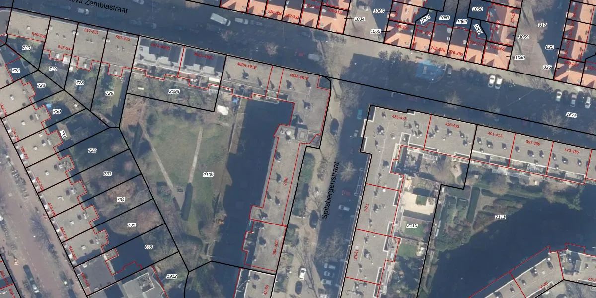 Spitsbergenstraat 12 is gelegen op kadastraal perceel ASD20X2109. Deze kadastrale aanduiding is uniek en wordt gebruikt door het Kadaster om eigendomsrechten en andere zakelijke rechten vast te leggen. Het perceel maakt onderdeel uit van de kadastrale gemeente Amsterdam.