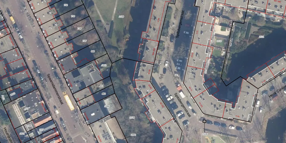 Het perceel waarop het adres ligt is ASD20-X-2114. De afkorting 'ASD20' staat voor kadastrale gemeente Amsterdam. De oppervlakte van het perceel is 2340 m². Dat is groter dan gemiddeld in Amsterdam, waar de gemiddelde perceeloppervlakte op 466,51 m² ligt. De grootste perceeloppervlakte in de kadastrale gemeente is 3,6 ha. De kleinste oppervlakte bedraagt 0 m². Op het perceel zijn 53 adressen aanwezig. In de Basisregistratie Kadaster (BRK) werden de grenzen van het perceel geregistreerd op 26-01-2007.