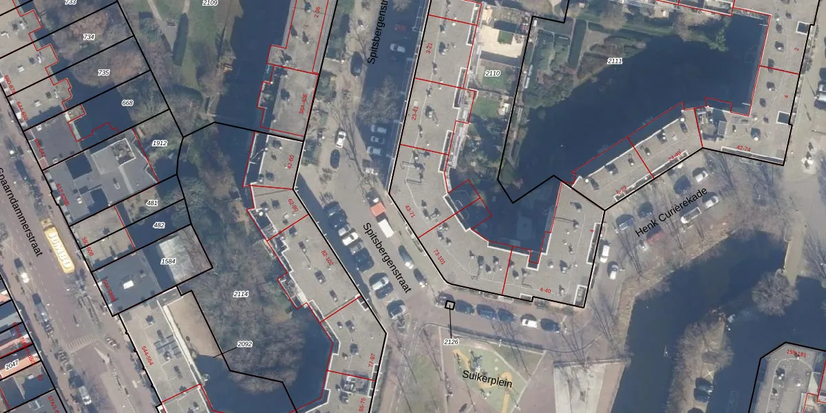 Het perceel waarop het adres ligt is ASD20-X-2110. De afkorting 'ASD20' staat voor kadastrale gemeente Amsterdam. De oppervlakte van het perceel is 3004 m². Dat is groter dan gemiddeld in Amsterdam, waar de gemiddelde perceeloppervlakte op 466,51 m² ligt. De grootste perceeloppervlakte in de kadastrale gemeente is 3,6 ha. De kleinste oppervlakte bedraagt 0 m². Op het perceel zijn 102 adressen aanwezig. De huidige grenzen van het perceel zijn digitaal in de Basisregistratie Kadaster (BRK) geregistreerd op 26-01-2007.