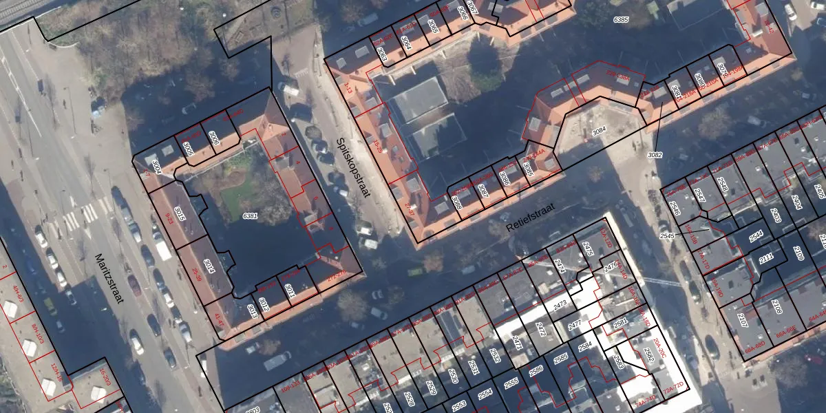 Het adres ligt op het perceel ASD19-W-6385, dat zich in de kadastrale gemeente Amsterdam bevindt. Het perceel is met 3292 m² relatief groot. Het gemiddelde ligt in de kadastrale gemeente Amsterdam op 1563,05 m². Het kleinste perceel in de kadastrale gemeente is 0 m² groot. De grootste perceeloppervlakte is 17,9 ha. Op het perceel zijn 52 adressen aanwezig. De huidige grenzen van het perceel zijn digitaal in de Basisregistratie Kadaster (BRK) geregistreerd op 01-11-2006.