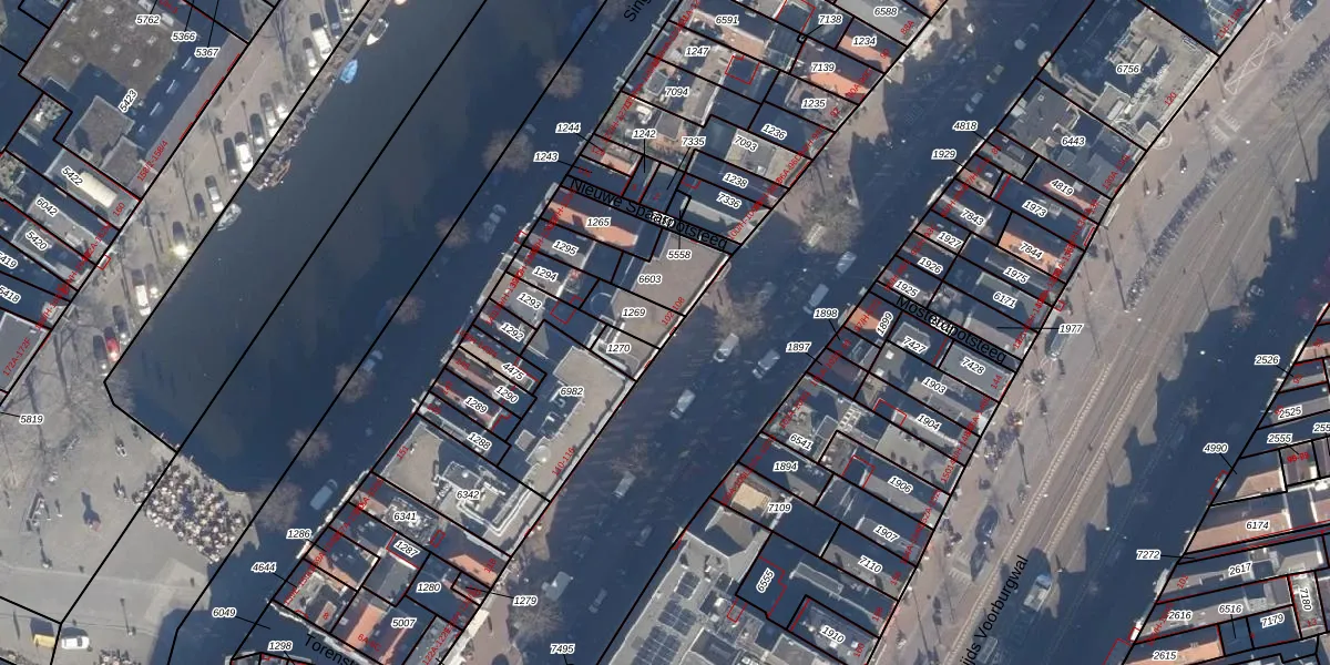 Het perceel waarop Spuistraat 104-B staat heeft een oppervlakte van 67 m². Dit is een klein perceel. De perceeloppervlakte wordt geregistreerd door het Kadaster. Gedetailleerde informatie over de maten van dit perceel kunt u vinden in het rapport Kadastrale kaart met maatvoering van Spuistraat 104-B.