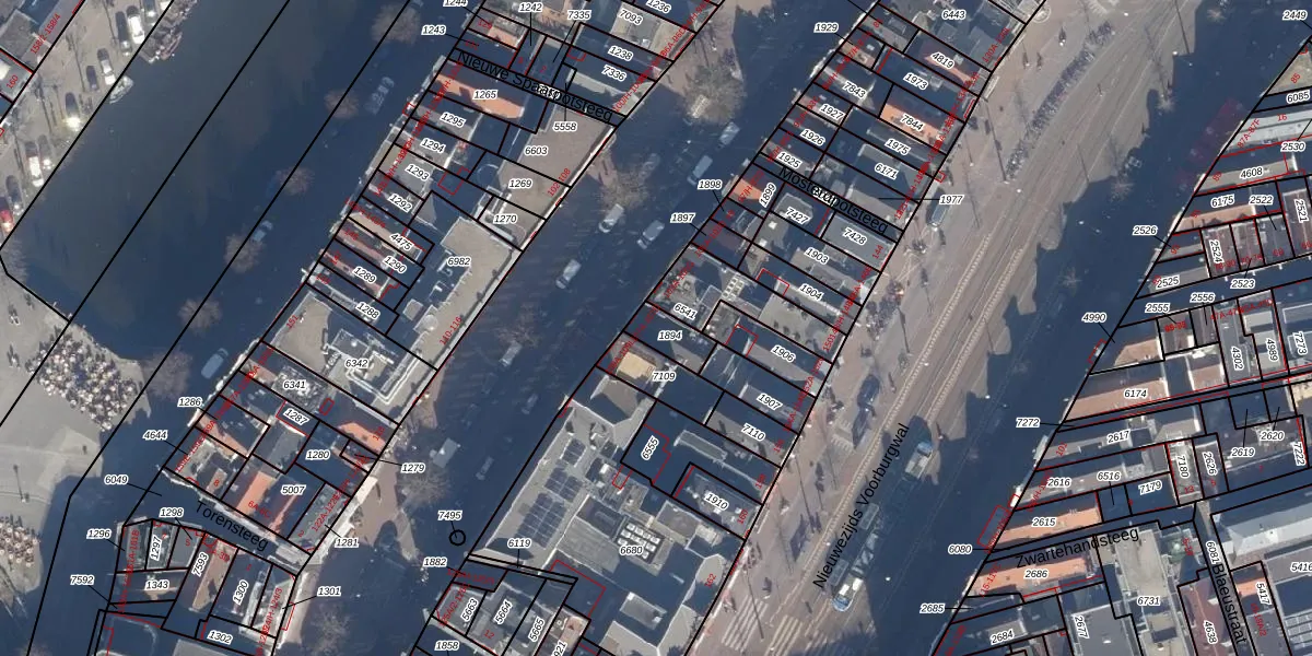 Het perceel waarop Spuistraat 107-B staat heeft een oppervlakte van 78 m². Dit is een klein perceel. De perceeloppervlakte wordt geregistreerd door het Kadaster. Gedetailleerde informatie over de maten van dit perceel kunt u vinden in het rapport Kadastrale kaart met maatvoering van Spuistraat 107-B.
