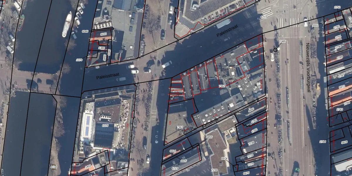 Het perceel waarop Spuistraat 181-B staat heeft een oppervlakte van 1575 m². Dit is een zeer groot perceel. De perceeloppervlakte wordt geregistreerd door het Kadaster. Gedetailleerde informatie over de maten van dit perceel kunt u vinden in het rapport Kadastrale kaart met maatvoering van Spuistraat 181-B.