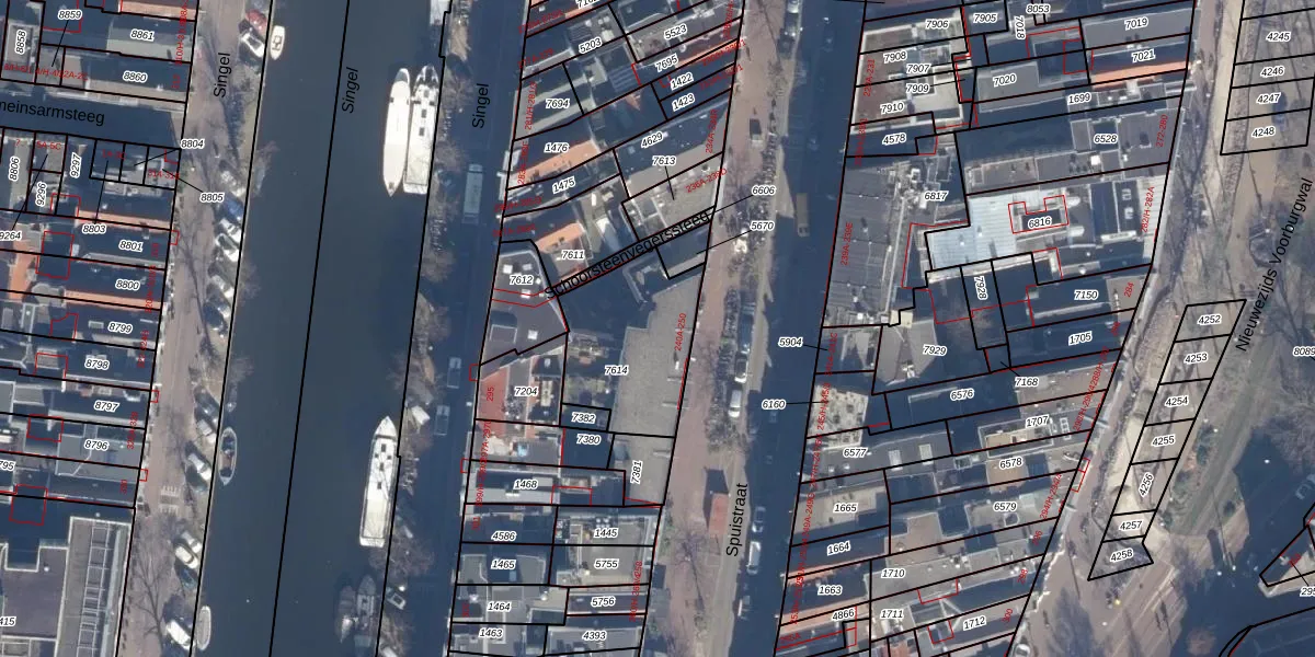 Het perceel waarop Spuistraat 246-M staat heeft een oppervlakte van 455 m². Dit is een groot perceel. De perceeloppervlakte wordt geregistreerd door het Kadaster. Gedetailleerde informatie over de maten van dit perceel kunt u vinden in het rapport Kadastrale kaart met maatvoering van Spuistraat 246-M.