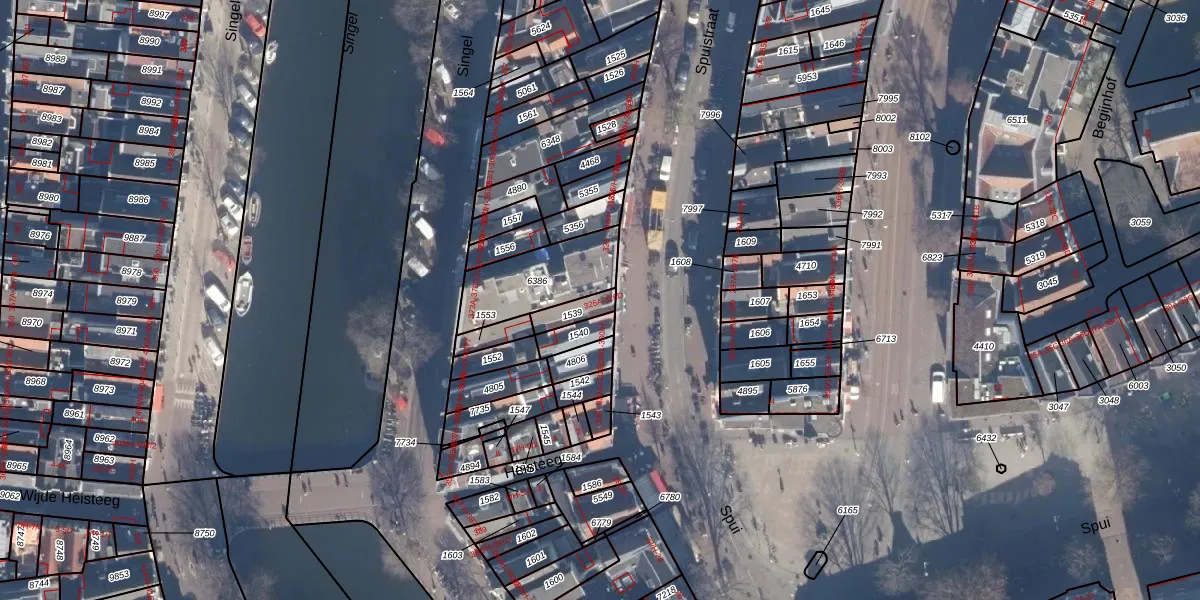 Het perceel waarop Spuistraat 326-A staat heeft een oppervlakte van 52 m². Dit is een klein perceel. De perceeloppervlakte wordt geregistreerd door het Kadaster. Gedetailleerde informatie over de maten van dit perceel kunt u vinden in het rapport Kadastrale kaart met maatvoering van Spuistraat 326-A.