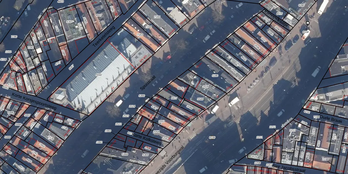 Spuistraat 7-A is gelegen op kadastraal perceel ASD04F6976. Deze kadastrale aanduiding is uniek en wordt gebruikt door het Kadaster om eigendomsrechten en andere zakelijke rechten vast te leggen. Het perceel maakt onderdeel uit van de kadastrale gemeente Amsterdam.