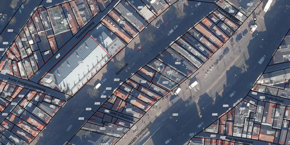 Spuistraat 7-B is gelegen op kadastraal perceel ASD04F6976. Deze kadastrale aanduiding is uniek en wordt gebruikt door het Kadaster om eigendomsrechten en andere zakelijke rechten vast te leggen. Het perceel maakt onderdeel uit van de kadastrale gemeente Amsterdam.