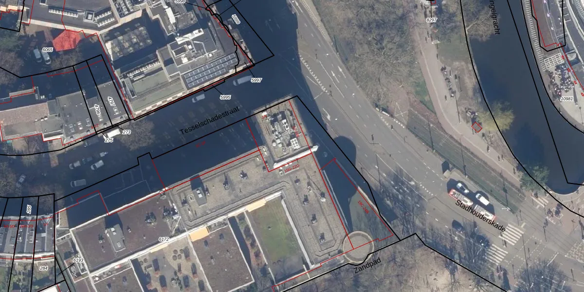 Het adres ligt op het perceel ASD14-R-6172, dat zich in de kadastrale gemeente Amsterdam bevindt. De gemiddelde perceeloppervlakte in de kadastrale gemeente Amsterdam is 354,38 m². Dit perceel is met zijn 6288 m² dus groter dan gemiddeld. Het grootste perceel in de kadastrale gemeente is 9,9 ha. Het kleinste perceel heeft een oppervlakte van 0 m². Op het perceel liggen in totaal 81 adressen. De huidige grenzen van het perceel zijn digitaal in de Basisregistratie Kadaster (BRK) geregistreerd op 17-01-2007.