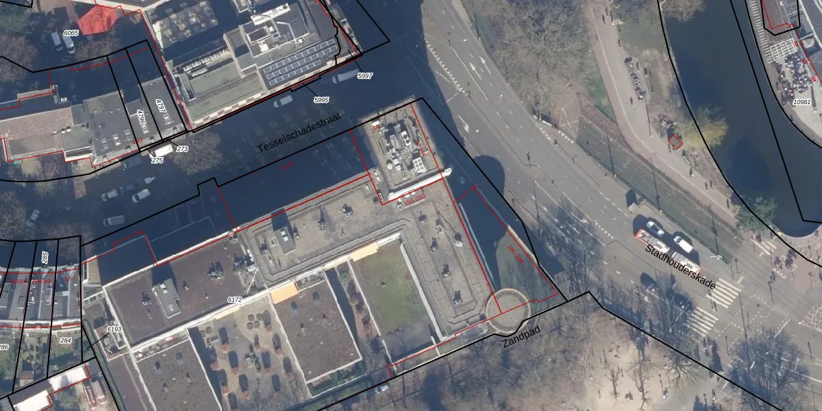 Het perceel waarop Stadhouderskade 16-L staat heeft een oppervlakte van 6288 m². Dit is een zeer groot perceel. De perceeloppervlakte wordt geregistreerd door het Kadaster. Gedetailleerde informatie over de maten van dit perceel kunt u vinden in het rapport Kadastrale kaart met maatvoering van Stadhouderskade 16-L.