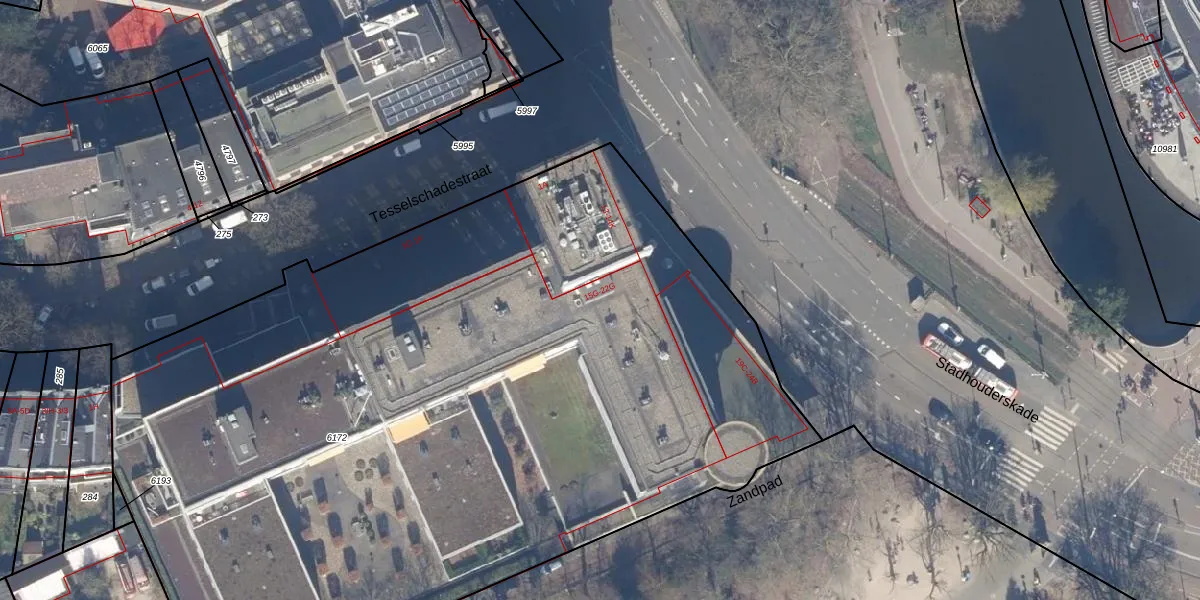 Het perceel waarop Stadhouderskade 16-N staat heeft een oppervlakte van 6288 m². Dit is een zeer groot perceel. De perceeloppervlakte wordt geregistreerd door het Kadaster. Gedetailleerde informatie over de maten van dit perceel kunt u vinden in het rapport Kadastrale kaart met maatvoering van Stadhouderskade 16-N.