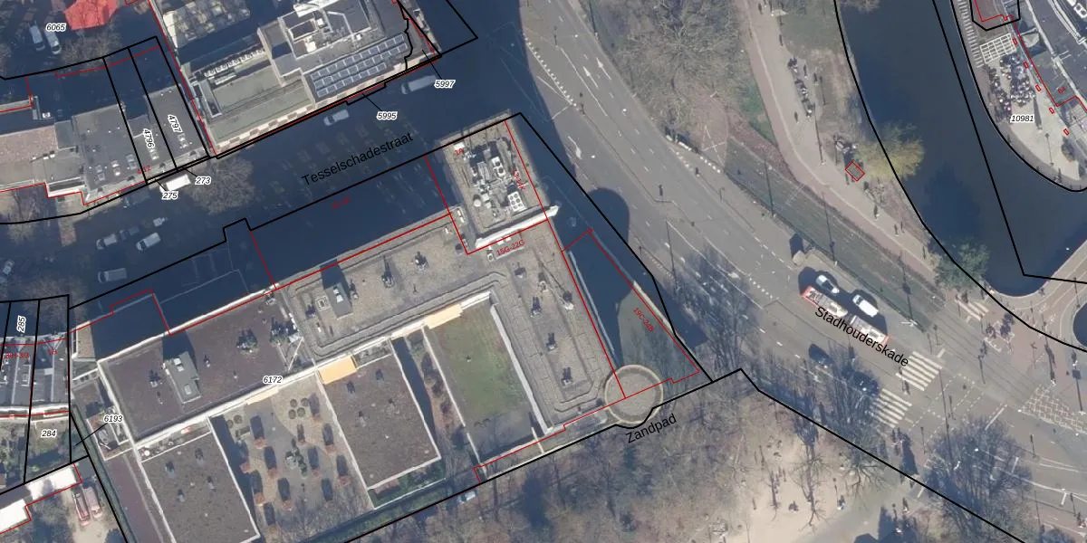 Het perceel waarop Stadhouderskade 18-H staat heeft een oppervlakte van 6288 m². Dit is een zeer groot perceel. De perceeloppervlakte wordt geregistreerd door het Kadaster. Gedetailleerde informatie over de maten van dit perceel kunt u vinden in het rapport Kadastrale kaart met maatvoering van Stadhouderskade 18-H.