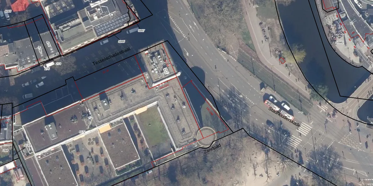 Het perceel waarop Stadhouderskade 19-C staat heeft een oppervlakte van 6288 m². Dit is een zeer groot perceel. De perceeloppervlakte wordt geregistreerd door het Kadaster. Gedetailleerde informatie over de maten van dit perceel kunt u vinden in het rapport Kadastrale kaart met maatvoering van Stadhouderskade 19-C.