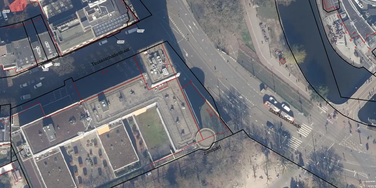 Het perceel waarop Stadhouderskade 19-D staat heeft een oppervlakte van 6288 m². Dit is een zeer groot perceel. De perceeloppervlakte wordt geregistreerd door het Kadaster. Gedetailleerde informatie over de maten van dit perceel kunt u vinden in het rapport Kadastrale kaart met maatvoering van Stadhouderskade 19-D.