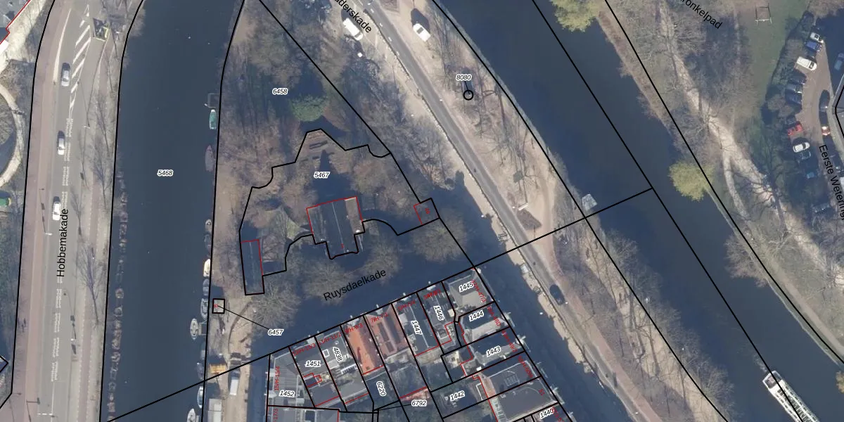 Het adres ligt op het perceel ASD14-R-5467, dat zich in de kadastrale gemeente Amsterdam bevindt. Het perceel is met 892 m² relatief groot. Het gemiddelde ligt in de kadastrale gemeente Amsterdam op 354,38 m². De grootste perceeloppervlakte in de kadastrale gemeente is 9,9 ha. De kleinste oppervlakte bedraagt 0 m². Er zijn 3 adressen aanwezig op het perceel. De huidige grenzen van het perceel zijn digitaal in de Basisregistratie Kadaster (BRK) geregistreerd op 09-01-2007.