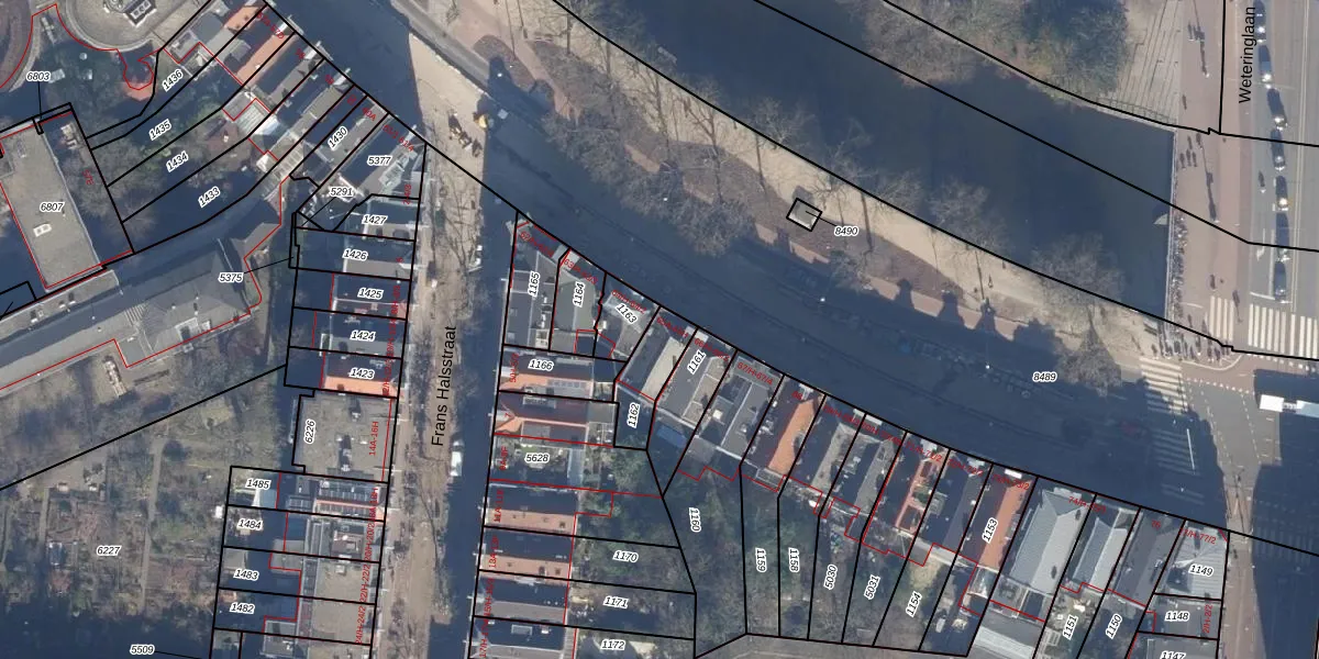 Het adres is gelegen op perceel 1162 in de sectie R en de kadastrale gemeente Amsterdam. De kadastrale aanduiding is aldus ASD14-R-1162. De gemiddelde perceelgrootte in Amsterdam is 354,38 m². Dit perceel is kleiner: de perceeloppervlakte bedraagt 137 m². Het kleinste perceel in de kadastrale gemeente is 0 m² groot. De grootste perceeloppervlakte is 9,9 ha. Op het perceel liggen in totaal 8 adressen. De huidige grenzen van het perceel zijn digitaal in de Basisregistratie Kadaster (BRK) geregistreerd op 06-10-2006.