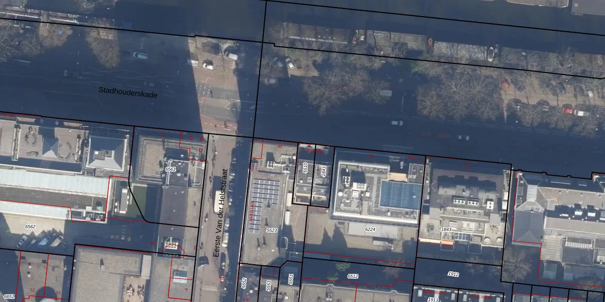 Stadhouderskade 82-A is gelegen op kadastraal perceel ASD14R5510. Deze kadastrale aanduiding is uniek en wordt gebruikt door het Kadaster om eigendomsrechten en andere zakelijke rechten vast te leggen. Het perceel maakt onderdeel uit van de kadastrale gemeente Amsterdam.
