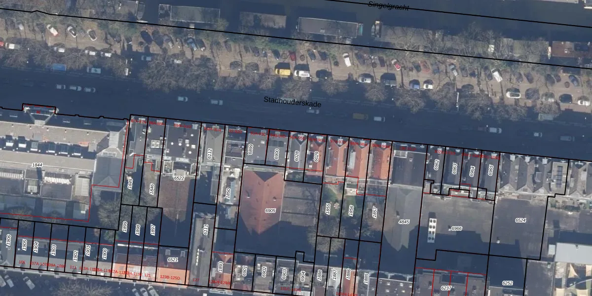Het perceel waarop Stadhouderskade 95-D staat heeft een oppervlakte van 108 m². Dit is een middelgroot perceel. De perceeloppervlakte wordt geregistreerd door het Kadaster. Gedetailleerde informatie over de maten van dit perceel kunt u vinden in het rapport Kadastrale kaart met maatvoering van Stadhouderskade 95-D.