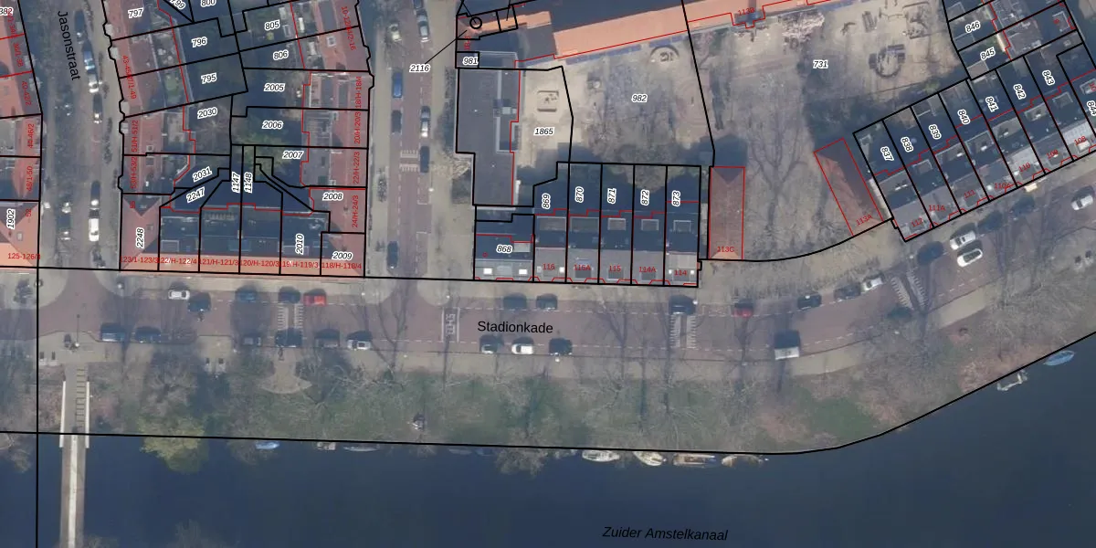 Stadionkade 116 is gelegen op kadastraal perceel ASD23AB869. Deze kadastrale aanduiding is uniek en wordt gebruikt door het Kadaster om eigendomsrechten en andere zakelijke rechten vast te leggen. Het perceel maakt onderdeel uit van de kadastrale gemeente Amsterdam.