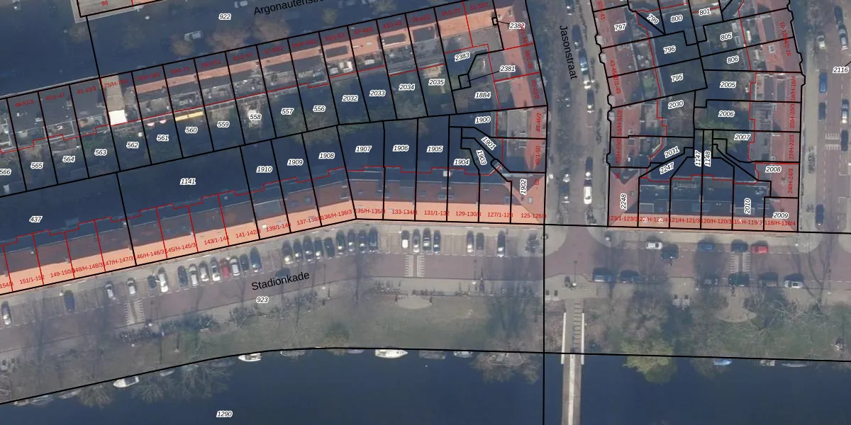 Stadionkade 132 is gelegen op kadastraal perceel ASD23AB1905. Deze kadastrale aanduiding is uniek en wordt gebruikt door het Kadaster om eigendomsrechten en andere zakelijke rechten vast te leggen. Het perceel maakt onderdeel uit van de kadastrale gemeente Amsterdam.
