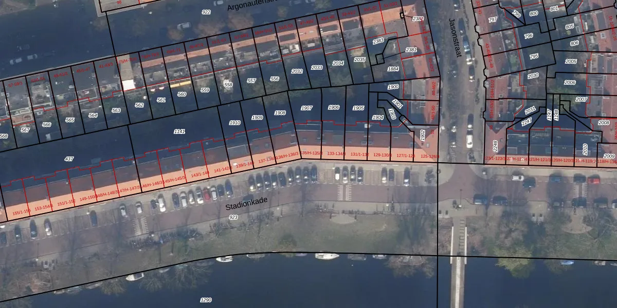 Stadionkade 135-H is gelegen op kadastraal perceel ASD23AB1907. Deze kadastrale aanduiding is uniek en wordt gebruikt door het Kadaster om eigendomsrechten en andere zakelijke rechten vast te leggen. Het perceel maakt onderdeel uit van de kadastrale gemeente Amsterdam.