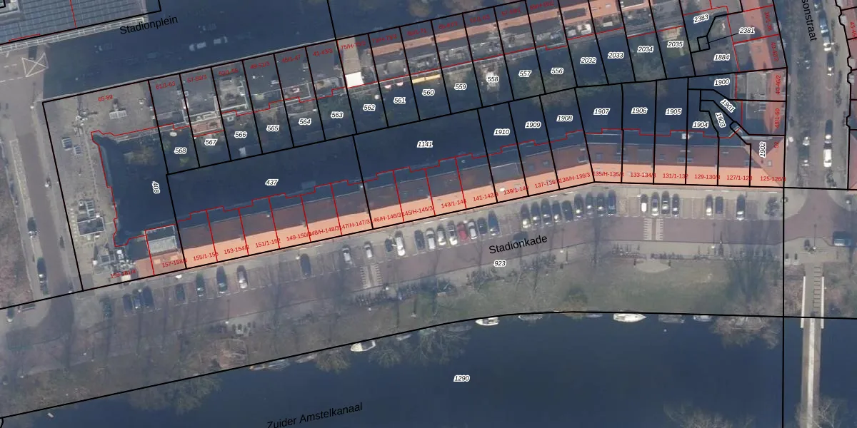Het perceel waarop Stadionkade 145-2 staat heeft een oppervlakte van 669 m². Dit is een groot perceel. De perceeloppervlakte wordt geregistreerd door het Kadaster. Gedetailleerde informatie over de maten van dit perceel kunt u vinden in het rapport Kadastrale kaart met maatvoering van Stadionkade 145-2.