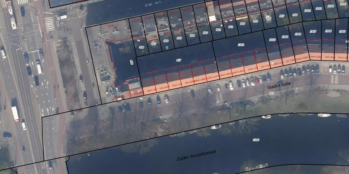 Stadionkade 152 is gelegen op kadastraal perceel ASD23AB437. Deze kadastrale aanduiding is uniek en wordt gebruikt door het Kadaster om eigendomsrechten en andere zakelijke rechten vast te leggen. Het perceel maakt onderdeel uit van de kadastrale gemeente Amsterdam.