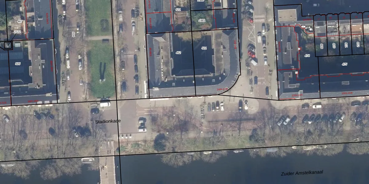 Stadionkade 16-H is gelegen op kadastraal perceel ASD23AB452. Deze kadastrale aanduiding is uniek en wordt gebruikt door het Kadaster om eigendomsrechten en andere zakelijke rechten vast te leggen. Het perceel maakt onderdeel uit van de kadastrale gemeente Amsterdam.