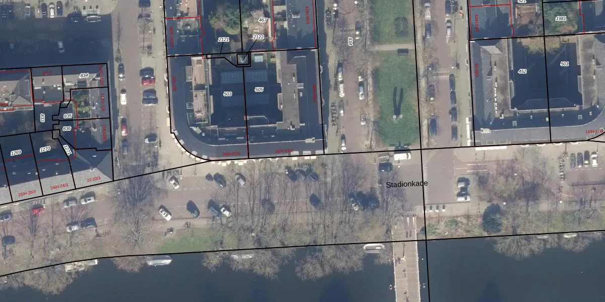 Stadionkade 18-1 is gelegen op kadastraal perceel ASD23AB505. Deze kadastrale aanduiding is uniek en wordt gebruikt door het Kadaster om eigendomsrechten en andere zakelijke rechten vast te leggen. Het perceel maakt onderdeel uit van de kadastrale gemeente Amsterdam.