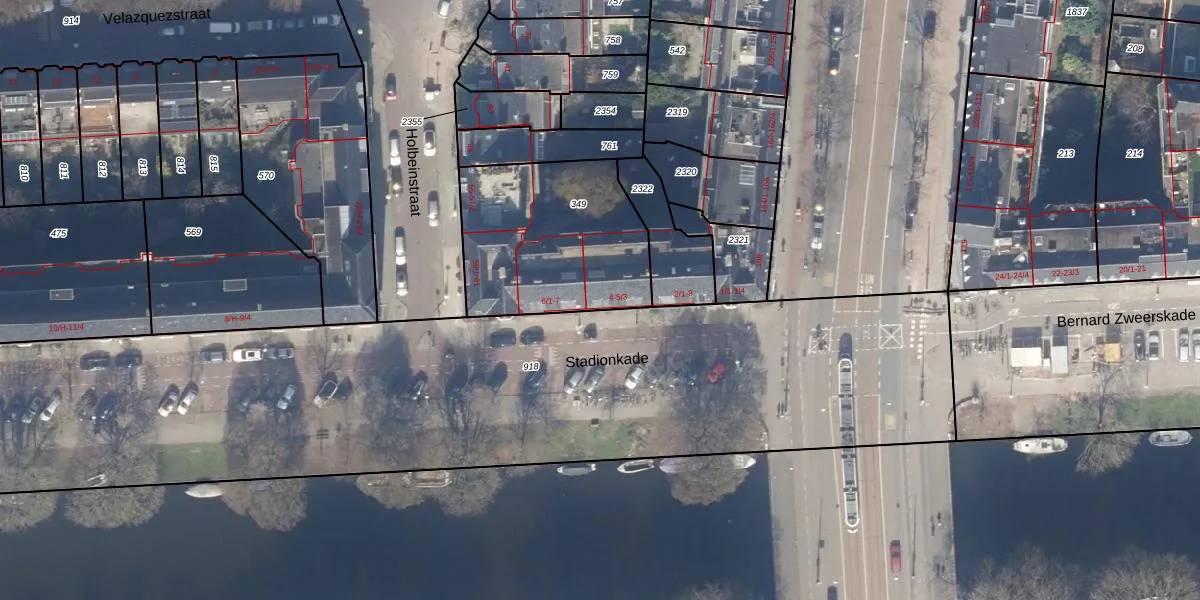 Stadionkade 5-3 is gelegen op kadastraal perceel ASD23AB349. Deze kadastrale aanduiding is uniek en wordt gebruikt door het Kadaster om eigendomsrechten en andere zakelijke rechten vast te leggen. Het perceel maakt onderdeel uit van de kadastrale gemeente Amsterdam.